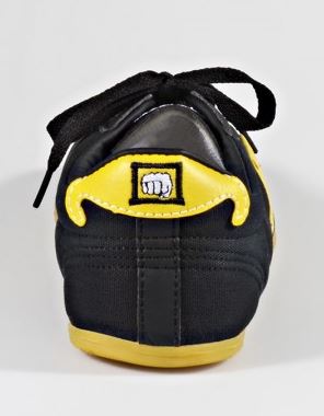En original kinesisk Kung Fu sko fra det nordlige Kina. Lavet af et meget slidstærkt, vævet nylon materiale med karakteristiske gul Kung Fu sål samt den typiske kinesiske gule design applikationer langs siderne og ved hælen. Solid kvalitet til en super pris.