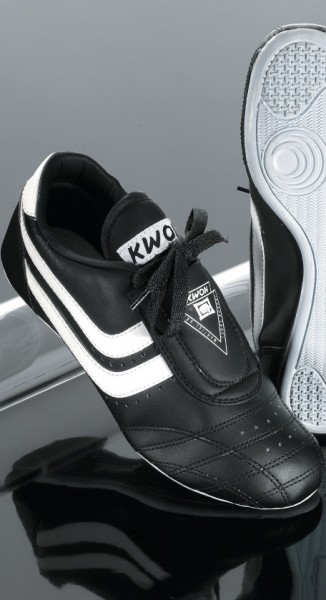 Den klassiske Kwon indendørs sko . Tynde, fleksible gummisåler, hævede hæle og ventilation huller. Ekstra polstring på forsiden og hæl, dobbelt-syninger.