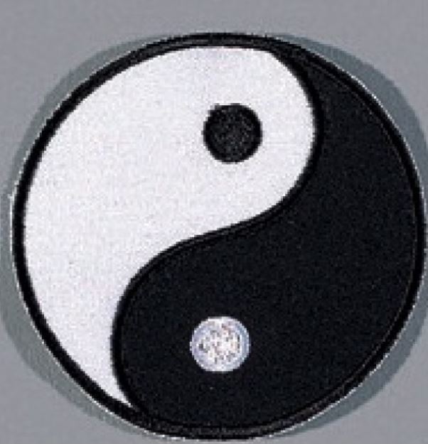 Broderet Yin og Yang mærke. Ca.8.5cm