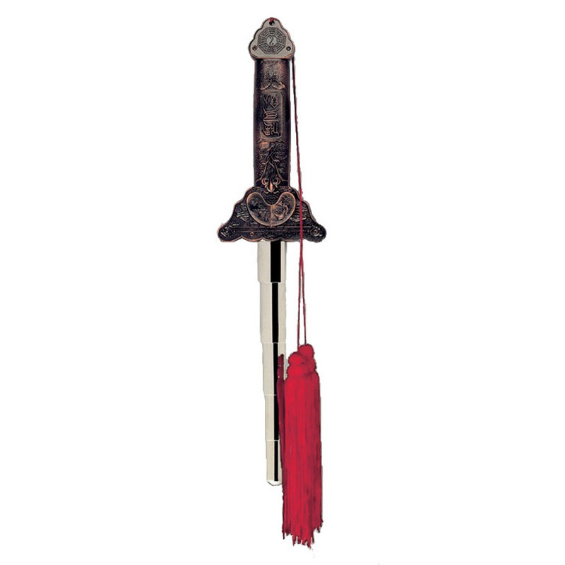 Wu Shui sværdet kan nemt udslåes og trækkes tilbage takket være teleskopfunktionen. Det udslåede sværd er ca. 98 cm langt og er ideelt til at udøve Taijiquan sværdformer. Med den lukkede længde på ca. 26 cm kan Wu Shu sværdet let transporteres i den medfølgende sort læderpose. Ved pung af det kinesiske sværd er en rød kvast. Den røde pommel i slutningen af Wu Shu sværdet hjælper med at opretholde balancen og udføre bevægelserne korrekt og flydende.