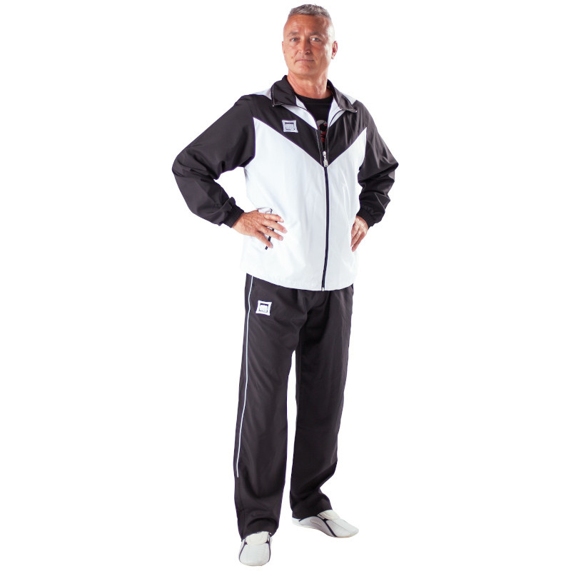 Denne funktionelle træningsdragt har et slim-cut i et moderne design. Et specielt let ydremateriale i 100% polyester og premium mesh-foring sikrer en høj og åndbar komfort. Jakken har 2 lynlåslommer, elastisk manchet og bunden af jakken kan justeres med en elastisk snørre. Bukserne leveres med 2 praktiske lynlåselommer samt lynlåse forneden.